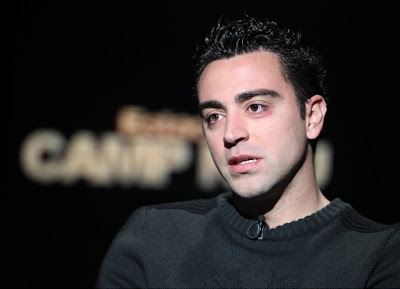 Xavi es un símbolo que no quiere oír hablar de la duración de su carrera como futbolista, pero lleva marcado en el rostro que algún día le veremos ocupar el banquillo del Camp Nou. Con una pasión desbordante, sólo igualada por ese perpetuo movimiento que mantiene con el balón en los pies, se concentra en explicar esos detalles que diferencian el juego blaugrana: el hombre libre;, el tercer hombre;, el toco y me quedo; tan opuesto al clásico toco y me voy;: