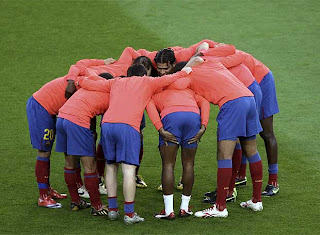 En cuanto al planteamiento tactico, cas todos estamos de acuerdo que Juande basara el partido en el repliegue rapido, la contencion del medio campo del Barça, la falta tactica, los plumones de Gago y Lass, la pilleria de Raul y la velocidad de Robben ante un Abidal que contara con la ayuda de Toure y Puyol, para desconectar al holandes del juego del equipo
