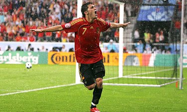 Por cierto, Villa sí sabe tirarse a la izquierda, lo hace de maravilla, lo lleva haciendo desde el sporting, kon diagolales endiabladas. Lo hace mejor k nadie, y recorrido…, no hace falta muxo recorrido kuando tu ekipo juega en el área rival. Las combinaciones de los 3 k jueguen arriba van a volver lokos a los defensas, pk todos puede jugar en kualkier sitio