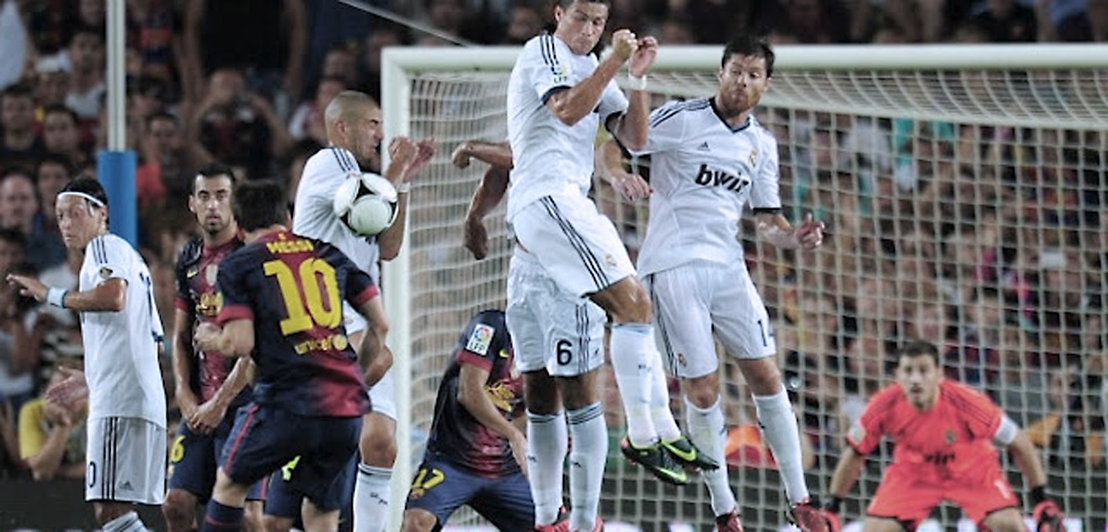 Más importante que cuanto balón tienes es el dónde lo tienes. Durante el primer tiempo, la posesión del Barça se localizó prácticamente en el circulo central. Antaño, los circuitos de posesión se asentaban en las frontales rivales, mientras que en la primera mitad se desarrollaron prácticamente en la medular. El Madrid, como se esperaba, salió presionando arriba, acompañando ese comportamiento con la línea defensiva adelantada que permitía la vuelta de Pepe. Líneas juntas y arriba. Dificultades para el Barça para iniciar y desaparición de los espacios a la espalda de mediocentros donde la recepción de Messi es el recurso más poderoso del equipo. Vilanova no utilizó la alternativa de situar en punta a Alexis para empujar hacía atrás a la línea blanca, y mientras estuvo en el terreno de juego ocupó la banda derecha.