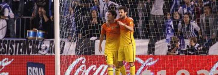 Cesc se hizo amo y señor del encuentro nada más empezar, con ese pase al alcance de muy pocos que permitió conectar con Jordi Alba. Al primer minuto el Barça se ponía por delante en el marcador. Se avecinaba tormenta. Una conexión Iniesta-Messi dejó al argentino encarando a los centrales, que quedaron demasiado expuestos por los espacios que concedía en transición la inclusión de Valerón en el once inicial. El ‘10’ condujo, juntó y soltó. Tello, que domina poco pero bien, regateó en seco y definió. 0-2.