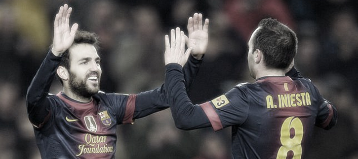 La esencia del Barça más líquido que dice @Trouro y que, por otro lado, no sería posible sin un jugador como Cesc que interpreta tan bien el movimiento sin balón percutiendo en vertical y en horizontal. Y sí, la incorporación de Jordi Alba ha dado una nueva dimensión al equipo, que con Iniesta partiendo de ahí pero ocupando en la práctica más puestos de interior que otra cosa, pues está dando unos resultados brutales además de no poco espectáculo sobre el césped.