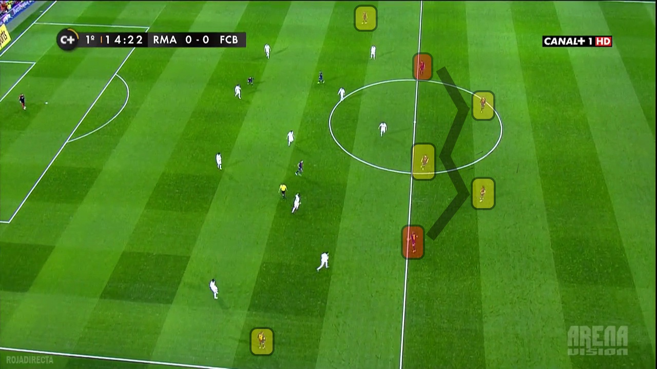 En los momentos en los que por la enorme calidad de sus jugadores el Barcelona conseguía avanzar, permitir la subida de Jordi Alba y poblar la última línea las ventajas eran evidentes, mas opciones de pase y menos presión sobre el poseedor del balón.