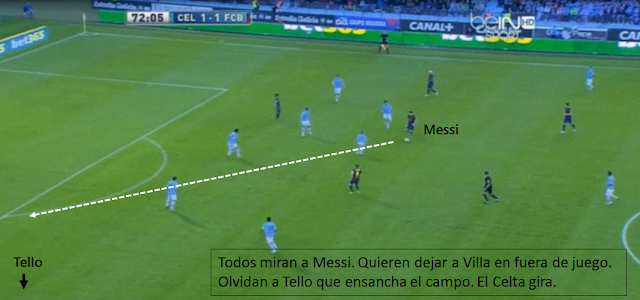 Los gallegos tenían el bloque alto, pero sin morder el balón. Jugaron el fuera de juego y lo consiguieron 5 veces (Tello en 3 ocasiones).